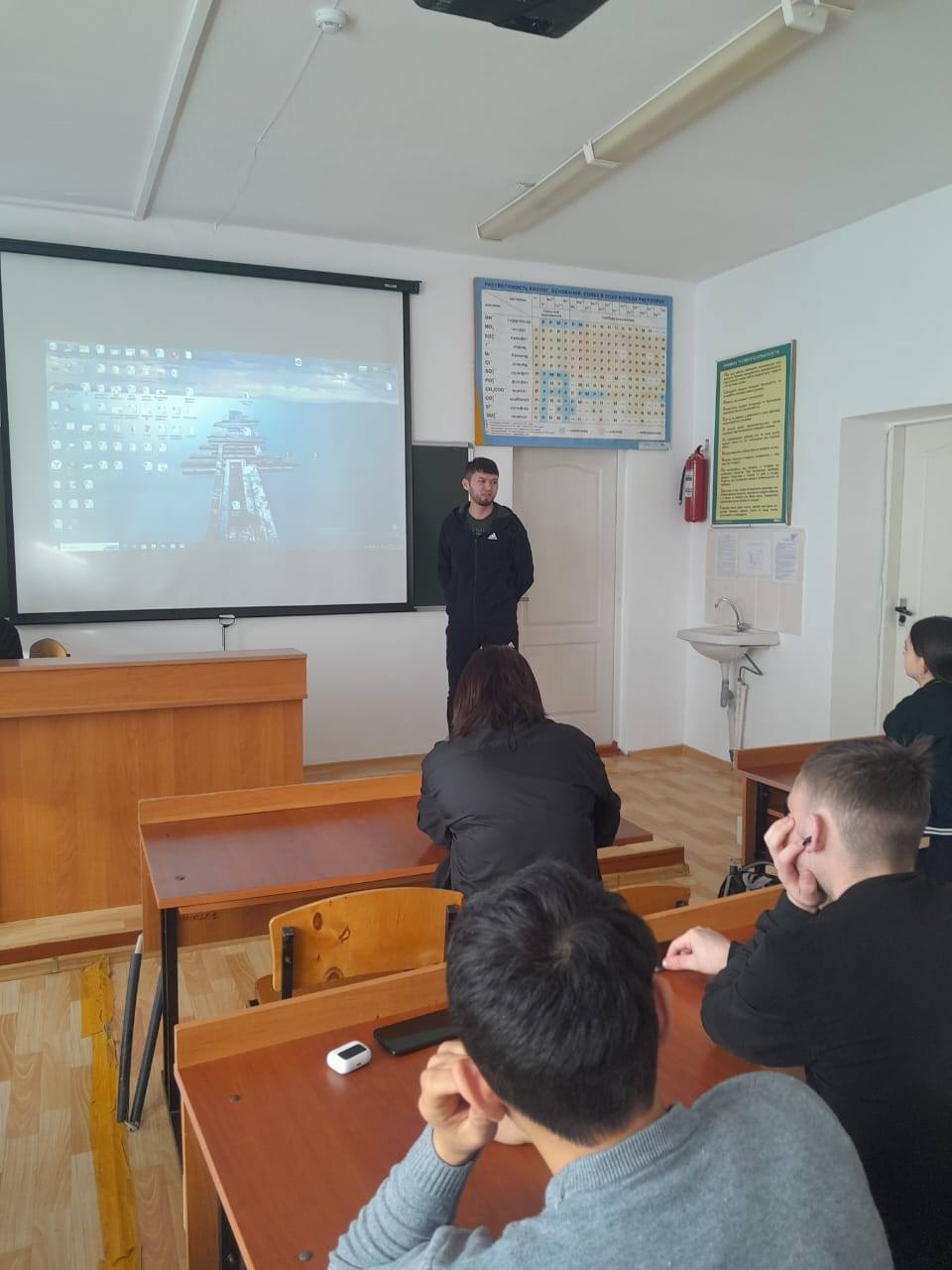 Старшеклассники с интересом слушали презентацию, задавали вопросы о поступлении и перспективах. В завершение встречи Абишев А.А. подвел итоги, подчеркнув, что выбор профессии – ответственный шаг, который определяет будущее каждого.